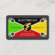 At its center point is a gold lightning bolt logo you can use. The job title or business "electrician" which you can change is at the top with the contact details at the base of the card. Towards the left and right sides of the card are two slogan captions which can advertise your business. Again, change the captions accordingly.