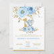 Elefant 1:a födelsedag Blå Blommigt Boy Inbjudningar
