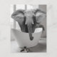 Elefant badkar svart vit badrums konst vykort