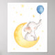 Elefant Månstjärnor Ballong Vacker Sängkammare Poster