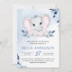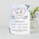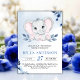 Elefant med blå Anemones vattenfärgsbabyskor Inbjudningar