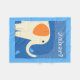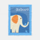 Gullig ullfilt för bebis eller småbarn. Elefanten besprutar vatten från hans stam med två blåttfåglar som tittar på. Blåttbakgrund. Tillfoga ditt barns namn.