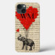 Anpassa enkelt det här roliga, roliga elefantdjuret som hålls upp och flyter med romantiska hjärtformade ballonger från kärlek på en antika brev-bakgrund med din namntext eller monogram initialer för att göra en unik monogrammad gåva till din älskare, älskling, flickvän eller valentin.