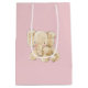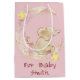 Cute elephant sitta på ett halvmåne måne med guld-stjärnor, blommor och glitter för baby. Bakgrunden till färg kan ändras.