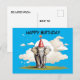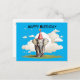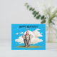 Det här är en AI-genererad design. Jag ville ha en elefant med en födelsedagsmössa på sig på en gräsplan och det är vad jag fick. Jag tyckte att en ljusblå bakgrund passade elefanten bra. På baksidan satte jag texten Levereras från:, Skicka till: