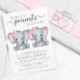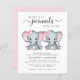En söt och budgetvänlig virtuell tvillingflickors baby shower-inbjudan med "Two Sweet Little Peanuts Are On Their Way" skriven i en blandning av modern, mjuk grå typografi och stilfullt skrivsätt, och två pastellrosa akvareller av babyelefanter. Anpassa den blivande mammans namn och detaljer om den virtuella showeren med enkel grå typografi.