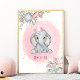 Elefant Vattenfärg Rosa Blommig Babyflicka Barnkam Poster