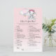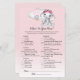 Spela Vad Finns På Din Telefon på din baby shower med dessa söta bebis elefant med rosa rosor blomsterkrans, söt elefant i rosa luftballong med vit moln, och rosa gradient bakgrund.