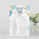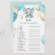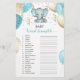 Det här baby-kortet för duschspel har turkos och grått pojke elephant med ballonger och konetti. Du kan anpassa spelet genom att klicka på knappen "anpassa". SVAR NYCKEL: 1. Diaper, 2. Vagga, 3. Rattle, 4. Flaska, 5. Nappar, 6. Gravid 7. Formel 8. Nalle 9. Högt ordförandeskap, 10. Barnvagn, 11. Baby Monitor, 12. Rattle, 13. Baby Powder, 14. Mobil, 15. Bröstpump, 16. 17. Bilsätet, 18. Gråtande, 19. Nursery, 20. Diaper Cream