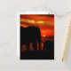 Solnedgångsilhuetter från en elefant från mor och baby.