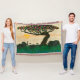 Flygplan av Afrika I av Alonzo Saunders. Naturens skönhet fångas i detta konstverk, som kännetecknas av att sol långsamt sätts in när elefanter passerar ett färglöst träd på Afrikas flygplan. | 132934GG