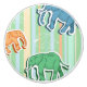 Det härliga seamless mönster av färgrika tecknadelefanter med skuggar att gå omkring över randar, i att lugna pastell, skuggar av orangegrönt- och blåttperfekten för ungerum som tapeten eller textilen. © och ® Bigstock® - all reserverad rättigheter.