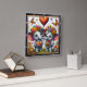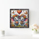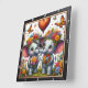 Denna förtjusande fyrkantiga väggklocka har en fantasifull digital illustration av två baby elefanter som står tillsammans i en livfull äng med vilda blommor. Varje elefant är prydd med en stor, färgglad krona gjord av tusenskönor och rosor, och de håller båda matchande blomsterbuketter i sina snablar. En stor, mönstrad hjärtformad ballong svävar mellan dem, medan ljusa fjärilar dansar genom den luftiga, vita bakgrunden. Scenen är fylld med mindre svävande hjärtan och en frodig marktäckning av olika blommor. Konsten är inrymd i en modern svart trästrukturerad ram med feta vita siffror för tydlig synlighet. Detta funktionella hemtillbehör är en idealisk dekorativ pjäs för barnkammare, lekrum eller som en s