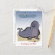 Den mäktiga tecknadens elefantsäl på stranden tittar sorgligt på den månbelysta natten himlar. Är det ensamt? Orden på detta vykort kan ändras efter dina behov.