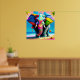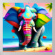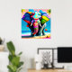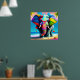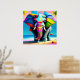 Elefantutskrift av funky och uppspelning av regnbå poster