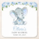 Lägg till en personlig beröring till babyduschen firande med den här snyggten och de minnesvärda party-objekten! Konstruktionen har blå vattenfärgblommor (ro och peonier), grönt löv och liten elefant på vit bakgrund.