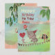 Det här är en söt, handmålad vattenfärg och en digital blandning av födelsedagskort för din lilla. Den har en söt elefant som bär en blomma, en vacker mus som håller ett stort hjärta och en uggla som marscherar för födelsedagsfesten på Bunting Flaggor. Framsidan och baksidan är på en vacker orange för övertoning av rosa, blå och grönt pastellbakgrund. All text kan enkelt anpassas efter dina önskemål. Lägg till ditt barns Namn. Kontrollera liknande födelsedagskort under samlingen i gult och rosa färg.