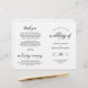 Det här är det vikbara programkortet för ceremonin i bröllop, i elegansskript i svart färg temed. Det är designat med rullans accenttecken som kan vara personlig med anpassningsbar/ personlig för brudens sida, ceremonidetaljer, minnesanteckningar och tack. ** Obs! Dessa pappra textviktsprogram anländer jämnt och kräver vikning för att samlas ihop.