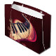 Elegance in motion, the curved piano. The keyboard curves and winds elegantly, creating an abstract and vibrant composition. The keys feature a soft gradient, ranging from light peach on the upper edge to pure white on the lower edge. Between the light keys are classic black keys, enhancing the contrast and emphasizing the musical theme. The interplay of the warm colors, the curved shape, and the ornate decorations creates a harmonious, artistic overall appearance that is both musically inspired and visually appealing.