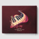 Elegance in motion, the curved piano. The keyboard curves and winds elegantly, creating an abstract and vibrant composition. The keys feature a soft gradient, ranging from light peach on the upper edge to pure white on the lower edge. Between the light keys are classic black keys, enhancing the contrast and emphasizing the musical theme. The interplay of the warm colors, the curved shape, and the ornate decorations creates a harmonious, artistic overall appearance that is both musically inspired and visually appealing.