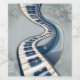 Elegance in piano keys and blossoms. The keys are in classic black and white and curve elegantly, twisting and intertwining in an artful manner to create a dynamic and visually appealing composition. These curved lines add vibrant movement and a touch of sophistication to the image. A bright, glossy bluish element runs alongside the keys, parallel to the keyboard. This element adds depth and dimension to the design, providing a modern contrast to the classic keys.