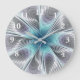 Elegance Modern Blue Grått White Fractal Art Flowe Stor Klocka