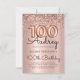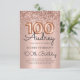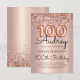 Gratulera till er milstolpe i stil med den här eleganten Ro Guld-ballongen 100:e födelsedagsinbjudan. Med nedsmutsande fotnotsballonger för ro guld, sofistikerad kalligrafi och mousserande glitter ram, allt mot en mjuk bakgrund för metallfolie för rosa. Perfekt för en glamorös och oförglömlig födelsedagsfest för milstolpe!