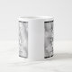 Fira tioårsdagen i bröllop med ett par av dessa snyggt gigantiska kaffe koppar! Elegant med hexagonala konfetti i bakgrunden på tennfolie ger en minnesvärd beröring för detta speciella tillfälle och milstolpe. Anpassa med parets namn, data i giftermål och/eller gratulationer. Omvänd visar identisk design. Design © W.H. Sim, Med reserverade Höger. Se mer på zazzle.com/expressionsoccasions
