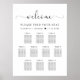 Elegantens nedladdningsbara sittande bröllop poster upp till 10 bord med välkomstskript i ett chic med dekortecken, "Hitta ditt säte" i klassisk serif-typografi, namn och bröllop-datum gått med ihop av ett hjärta och bordsnumren och gästnamn i i enkel modern typografi. Välj det digitala nedladdningsalternativet om du vill redigera med ändringar i sista minuten och skriva ut lokalt.