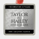 Minneshögtid för det elfte stålårsdagen i bröllop med denna minnesvärda prydnad! Elegantens svarta och vita bokstäver på en diamantpläterad, utsliten stålbakgrund tillför ett minnesvärt tryck för detta speciella tillfälle och milstolpe. Anpassa med parets namn, bröllopsdatum och gratulationer. Design © W.H. Sim. Se mer på zazzle.com/expressionsoccasions