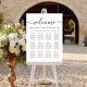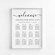 Elegantens nedladdningsbara sittande bröllop poster upp till 12 bord med välkomstskript i ett snyggt med dekortecken, "Hitta ditt säte", namn och bröllop-datum i elegant serif-typografi, och bordsnummer och gästnamn i enkel modern typografi. Välj det digitala nedladdningsalternativet om du vill redigera med ändringar i sista minuten och skriva ut lokalt.
