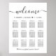 Elegant bröllop-sätesschemat poster ett tecken på upp till 12 bord med "välkomstskript" i ett chic med dekortecken, ditt namn och bröllop-datum gått med ihop av ett hjärta och "Vi är så glada att du är här" i klassisk serif-typografi. Om du vill kan du markera alternativet för digital nedladdning som ska redigeras med ändringar i sista minuten och skriva ut lokalt.