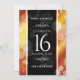 Gör den 16:e gyllene toaz bröllop-årsdagen till ett oförglömligt firande med dessa spara datum meddelande! Elegantens svarta och vita bokstäver med hexagonala konfetti på djup gult-röd-orange och svarta bakgrunder lägger till en minnesvärd beröring för detta särskilda tillfälle och denna milstolpe. Anpassa med parets namn, plats, adress, datum och tid. Design © W.H. Sim. Se mer på zazzle.com/expressionsoccasions