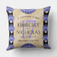 Fira 17-årsdagen med denna stilrena kudde! Elegant typsnitt med stiliserade lavendelfärgade snigelskal på en vit sandstrand bakgrund ger en minnesvärd touch för detta speciella tillfälle och milstolpe. Anpassa med parets namn, datum för äktenskapet och lyckönskningar för deras skaljubileum. Baksidan visar identisk design.