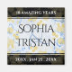 Högtidlighålla 18:e porslinsfirandet bröllop-årsdagen och påminna gästerna om denna kommande milstolpe med den här spara-datagenen! Svart och vit elegant med guld-bestruket hexagonalt konfetti på vit och porslinsblå marmorerad bakgrund tillför ett minnesvärt tryck för detta speciella tillfälle och milstolpe. Anpassa med lycklig parets namn och år av giftermål. Design- och fotoupphovsrätt W.H. Sim, alla Höger reserverade. Se mer på zazzle.com/expressionsoccasions