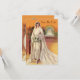 Vackra platta bröllopskort / inbjudningar med en elegant färgrik vintageillustration av en chic 1930-tals flapperbrud i kyrkan. Hon håller en söt bukett rosa blommor och bär en glamourös traditionell, flytande elfenbensvit / vit brölloppsklänning med långt, utsirat, stilrent spetsigt huvudbonad / slöja. Bakgrundsfärgerna är i underbara nyanser av orange och brunt. Dessa chic, klassiska inbjudningskort är dekorerade på båda sidor. Det finns en glamourös antiktryckt pärl- och spetsmatta för att du ska kunna anpassa med dina evenemangsuppgifter på baksidan av inbjudningarna. Moderna, trendiga, flickiga inbjudningskort. OBS: ALLA INBJUDNINGAR PÅ ZAZZLE HAR FLATA UTTRYCKTA BILDER. Pä