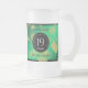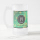 Fira den 19:e jaddagen i bröllop med ett par av dessa minneshögtider, frostat mugg! Elegant med guld-dammad sexkantig konfetti på en speglad grönt lägger till en minnesvärd beröring för detta speciella tillfälle och denna milstolpe. Anpassa med parets namn, data i giftermål och gratulationer. Omvänd visar identisk design. Design © W.H. Sim, Med reserverade Höger. Se mer på zazzle.com/expressionsoccasions