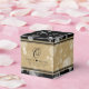 Högtidlighålla den första bröllop-årsdagen i stil med denna minnesruta! Elegantens svarta skript och serif-bokstäver med hexagonala konfetti på en åldras papper bakgrund som är kantad med svart pub lägger till en minnesvärd beröring för detta speciella tillfälle och denna milstolpe. Anpassa med lycklig-parets namn, lägg till ett första eller monogram för deras efternamn och lägg till data för deras pappra årsdag. Meddelanden om personlig kan läggas till på panelerna ovan och sida. Design © W.H. Sim. Se mer på zazzle.com/expressionsoccasions