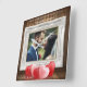 Fira din kärlek med denna vackert designade anpassade fotoväggklocka! Med en klassisk träpanel bakgrund, utsmyckad vit ram, romantiska hjärta grafik och personliga namn och datum, är det en perfekt souvenir för din 1:a bröllopsdag. Anpassa med ditt favoritfoto, namn och datum för en verkligt unik gåva som kommer att värderas för evigt. Perfekt för par, bröllop eller jubileum.