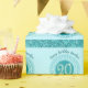 The sparkling Teal Blue Glitter wrapping paper, also features a unique Gold and Teal Blue Glitter, number 20, displayed on a modern plain circle, forming a charming wheel with Teal Blue dots and lines. Glitter Stripes with Teal Blue colors add a finishing touch to the celebration of her Twentieth Birthday.