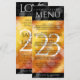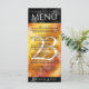 Lägg till sofistikering till 23:e kejsardagen i firande med den här middagsmenyn, som innehåller elegant och sexkantiga konfetti på djupa mors med röd gult och svart bakgrund. Anpassa med parets namn, data i giftermål, platsinformation, menyalternativ och gratulationsmeddelanden. Design © W.H. Sim. Se mer på zazzle.com/expressionsoccasions
