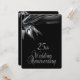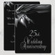 Unika svarta jubileumsinbjudningar för 25-års bröllopsfest. Svart framsida och baksida med silvertext på baksidan som ger en elegant look till denna kostnadsfria jubileumsinbjudan.