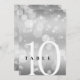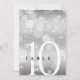 Lägg till sofistikering till 25:e årsdagen för bröllop i silver med det här bord-kortet, som innehåller elegant och hexagonala konfetti på silver-folie. Anpassa med bordsnummer. Omvänd visar identisk design. Design © W.H. Sim. Se mer på zazzle.com/expressionsoccasions