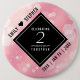 Högtidlighålla 2:a bröllop-årsdagen för ro-kvartalen med denna knapp för snyggt! Elegantens svarta och vita bokstäver med hexagonala konfetti på rikens rosa ger en minnesvärd beröring för detta speciella tillfälle och milstolpe. Anpassa med parets namn och data i giftermål. Design © W.H. Sim. Se mer på zazzle.com/expressionsoccasions