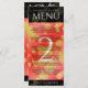 Lägg till sofistikering till 2:a garnet bröllop-årsdagen firande med den här middagsmenyn, som innehåller elegant och guld-bestruken sexkantig konetti på rödaktig orange och svart bakgrund. Anpassa med parets namn, data i giftermål, platsinformation, menyalternativ och gratulationsmeddelanden. Design © W.H. Sim. Se mer på zazzle.com/expressionsoccasions