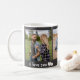 Detta moderna 3-foto-kollage, upplöst kaffe mugg är perfekt för ett par. Den enkla blå färg-formgivningen har en unik industriell stil med typografi. Anpassade i alla färg. Behålla utformningen minimal och elegant, eller anpassa den genom att lägga till foton.