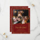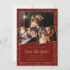 Elegant burgundröd och guld konetti bakgrund ramar 3 av dina pars foton. Texten är djupt guld. Spara datumet skrivs i en fet skripttext. 4 linjer text låt beskriva dina bröllop-planer för dina gäster.