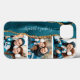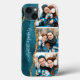 Elegant 3 Photo Collage Namn Teal Guld Agate