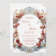 Celebrate your special day with this exquisite wedding invitation featuring a sophisticated Victorian-style oval frame. The design showcases intricate blue and gold scrollwork intertwined with a lush arrangement of delicate 3D-effect flowers in shades of dusty rose, soft peach, and muted blue. Perfectly suited for vintage-inspired, garden, or formal estate weddings, this invitation combines classic elegance with a touch of botanical artistry. All text elements can be easily customized to fit your specific ceremony details. Bride and room names only in an elegant calligraphic classic script. With bride and groom initials and the wedding date on the backside.