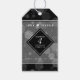 Lägg till en speciell beröring från extra till firande på bröllop-årsdagen för 4:e raden med dessa märkre för snyggtar! Elegant med vita bokstäver med hexagonala konfetti på en grått linen bakgrund ger en minnesvärd beröring för detta speciella tillfälle och milstolpe. Anpassa med parets namn och år av giftermål. Ett lyckönskningsbudskap kan läggas till om det motsatta. Design © W.H. Sim. Se mer på zazzle.com/expressionsoccasions